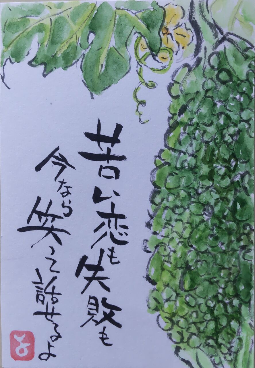 ゴーヤ、今年も豊作。ジュ-スにしてのんでる。にがい、にがい、苦いが体に良いらしい。人生にも苦い経験があってこそ成長すると聞く。