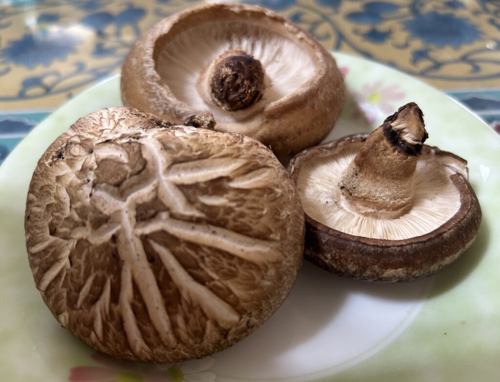 ふっくら美味しそうな椎茸です 昔、阿蘇の友達の原木椎茸づくりを手伝いに行き、原木一つ自分用にしてもらってた事があって 最初は良かったけど、後は採りきれなくて ドンドン大きくなって、諦めた苦い経験が