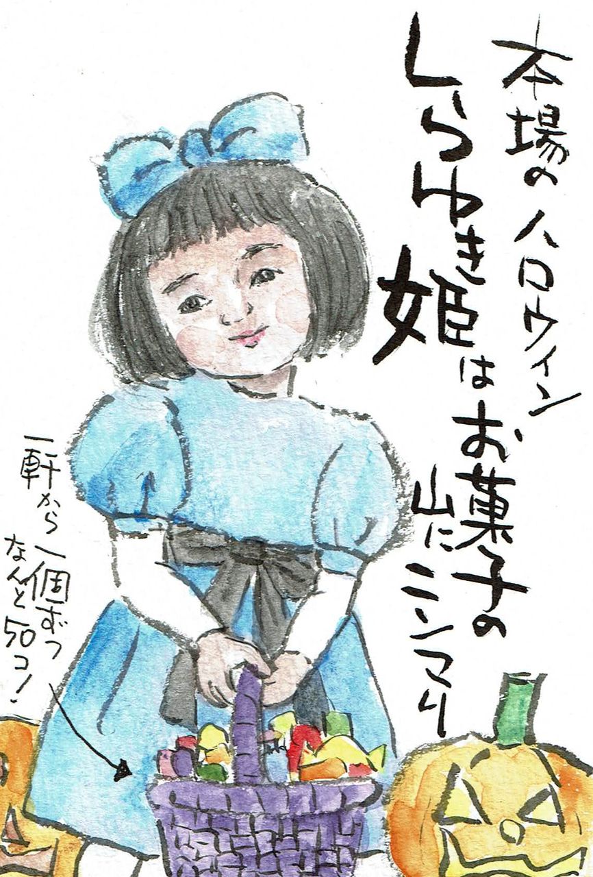 子は仮装し、団体で一軒ずつ回る。親達はトラックの荷台に乗り、南瓜畑へ。家族総出のビッグイベント。