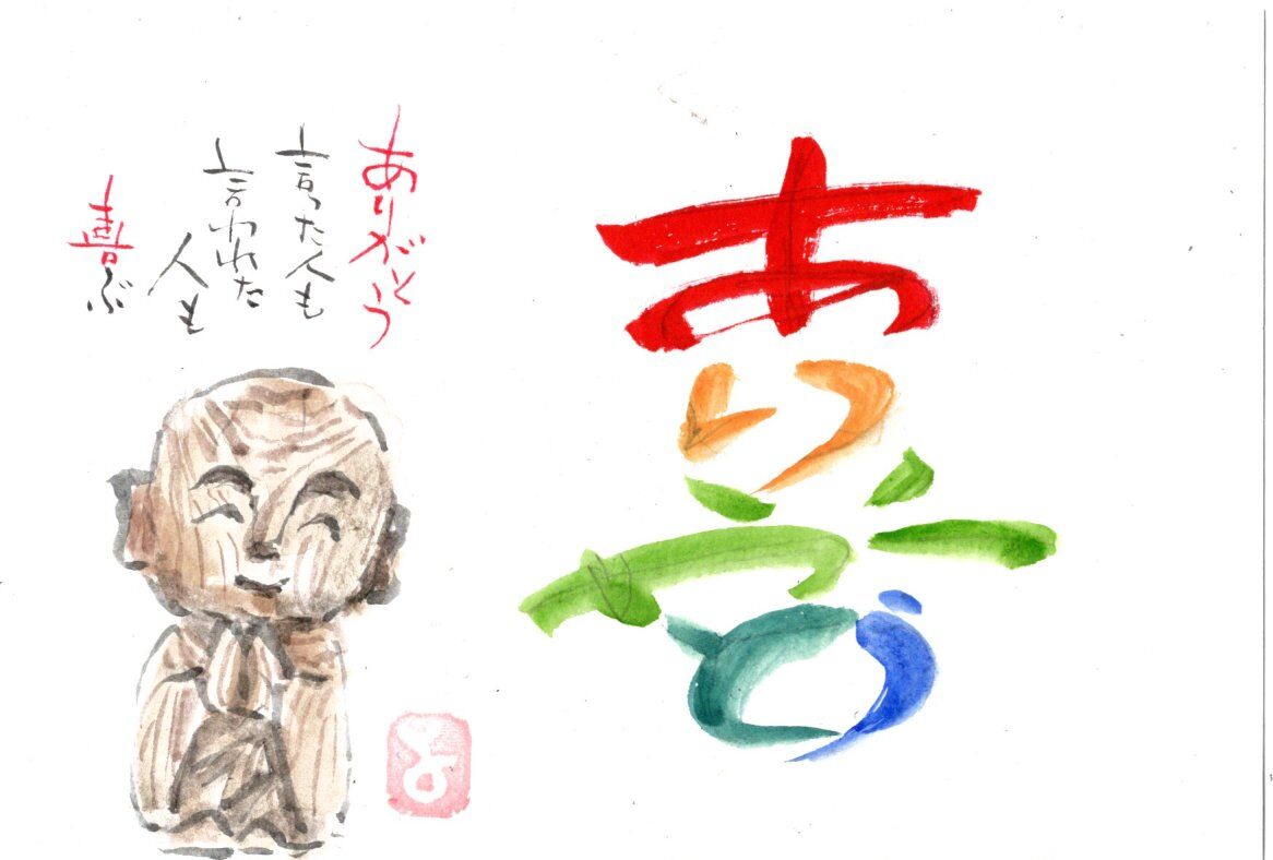 「ありがとう」で字を書く第三弾。阿蘇望の郷の木の地蔵さん。