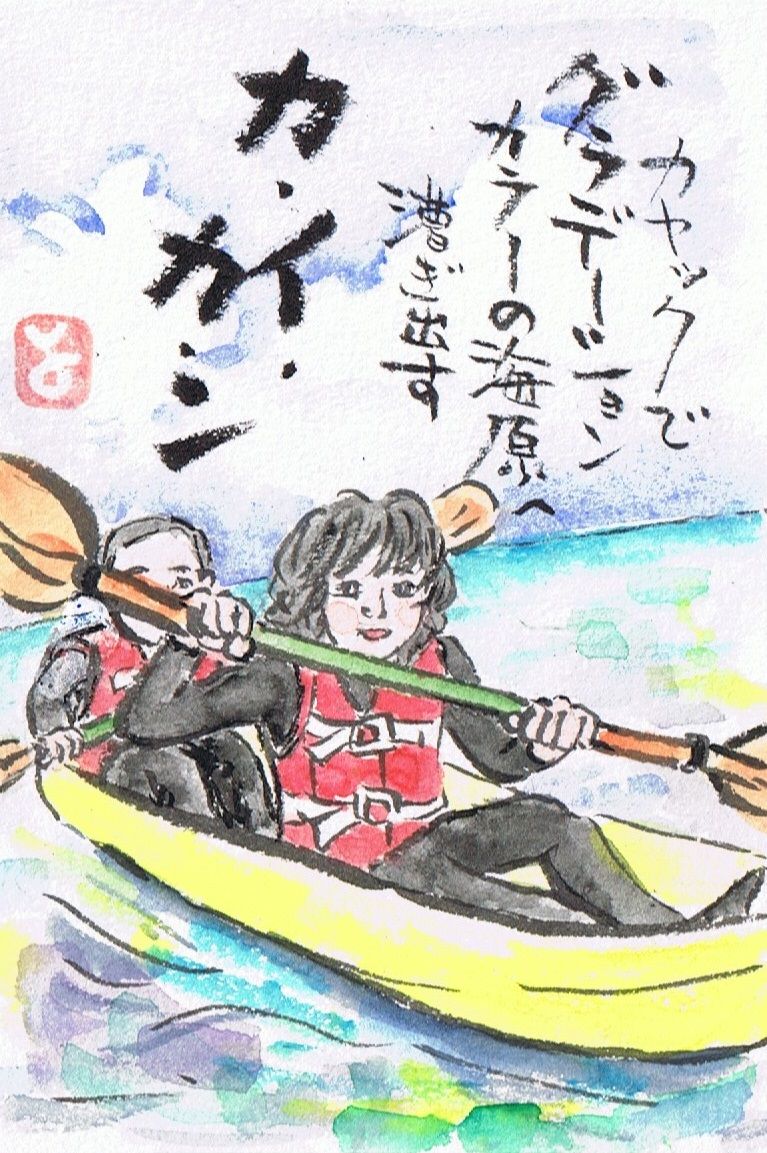 初カヤックは、漕がずにス~イスイ。(インストラクターとのコンビだったので)娘婿のご両親。相性良くても、「進まへ~ん」