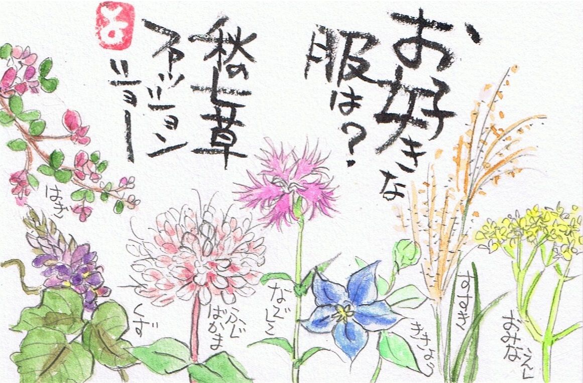 お(女郎花)す(薄)き(桔梗)な(撫子)ふ(藤袴)く(葛)は(萩)?秋の七草、覚えましょ。