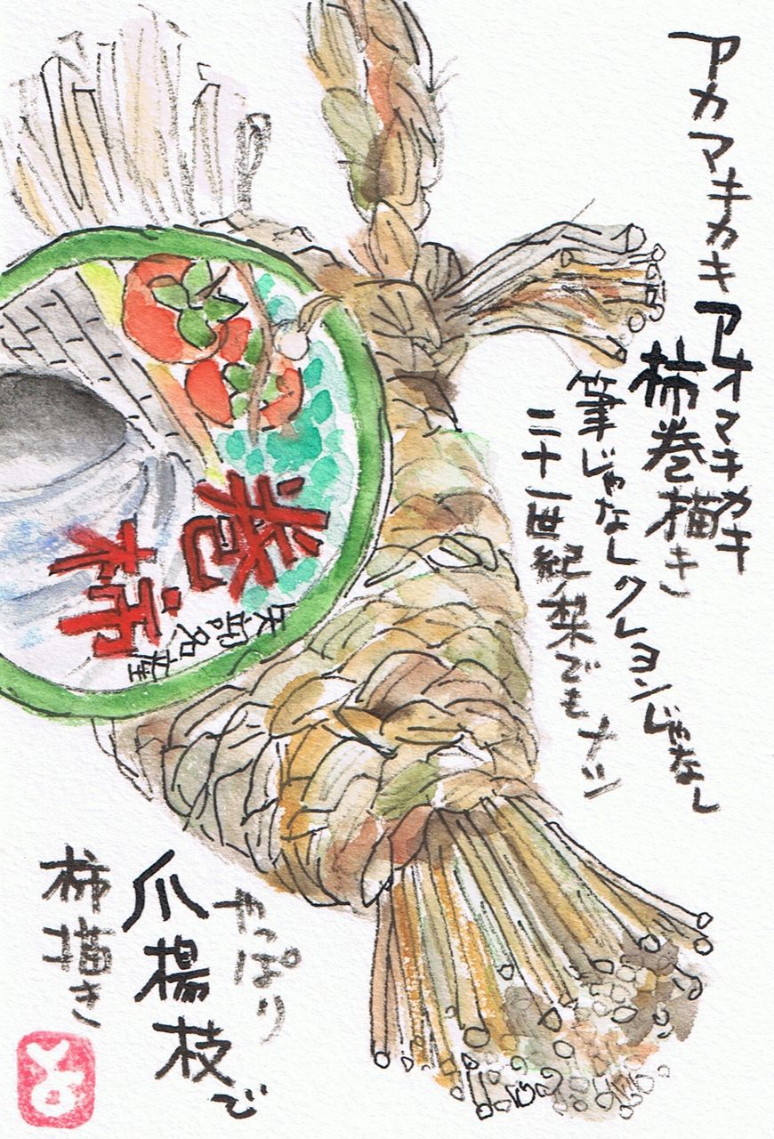 巻いた人の手間を考えたら、食べれましぇ~ん。アーデモコーデモナシ、頭カキカキ、、、細い藁(わら)は爪楊枝で描くとグー。