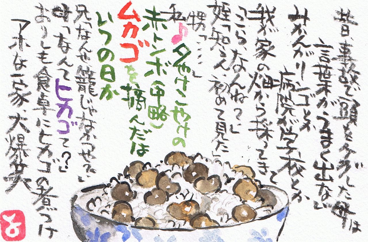 「ヒカゴ」とはヤリイカの一種で体長5~8㎝、ヒイカゴとかヒイカともいう。地元の海でよく捕れる。賑やかな食卓を求めて、週一は実家へ。
