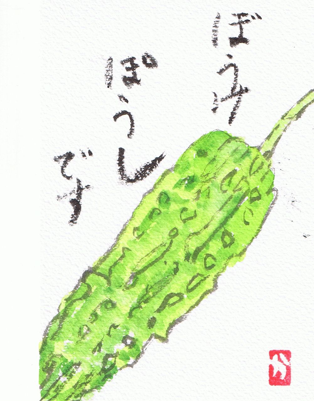 マミズマミーのマミーは、現在八十歳。母の絵手紙の先生は、ハナイチさんです。「ボケ防止」と本人は書いたつもり。(苦瓜で苦笑)