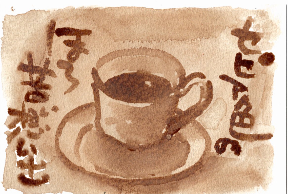 ホットが美味しい季節。我流、ローソク使わず濃淡だけで描く。