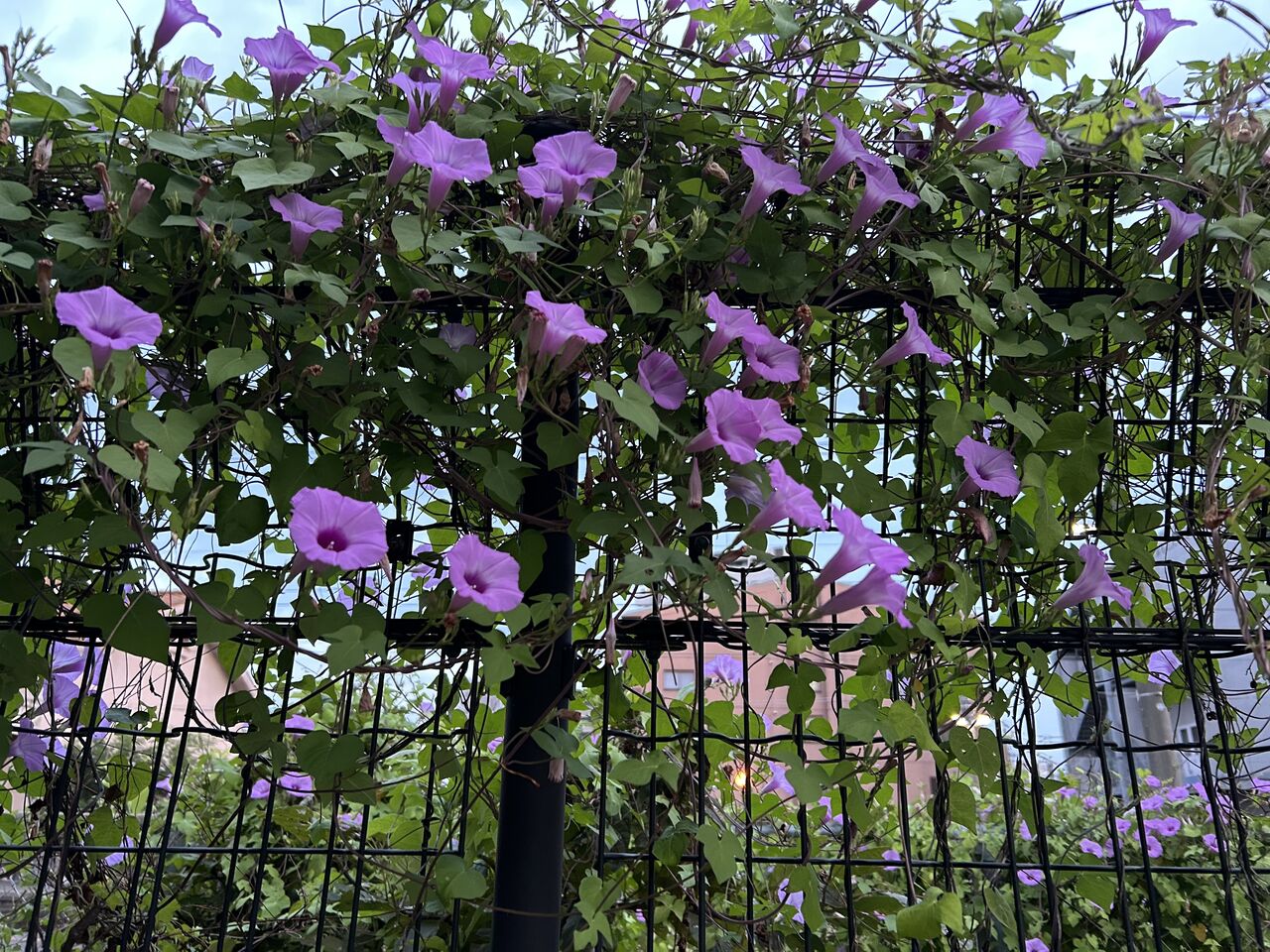 散歩の楽しみの一つ。小さな朝顔がいっぱい。
