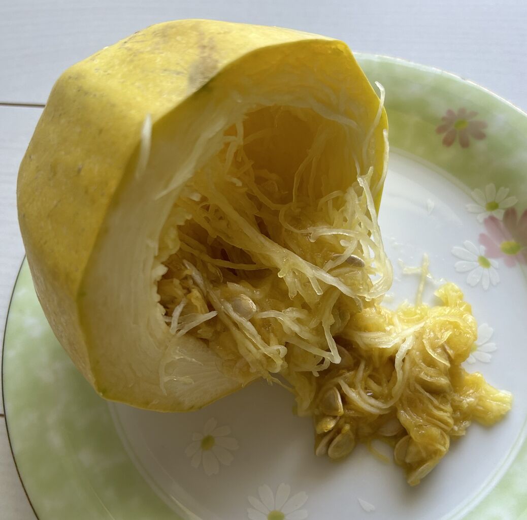 カボチャが糸状になって、どんどんほどけて来る。ユニーク野菜。