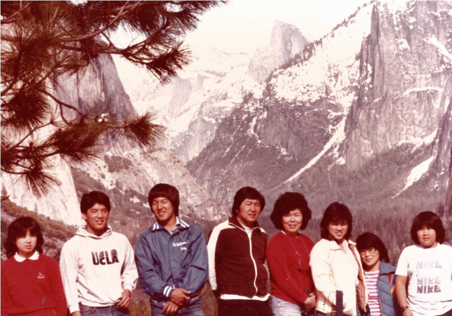 アメリカでお世話になったご夫婦。写真(上)ヨセミテにて初スキー(下)小学校のキャンプ(私はどこ?)