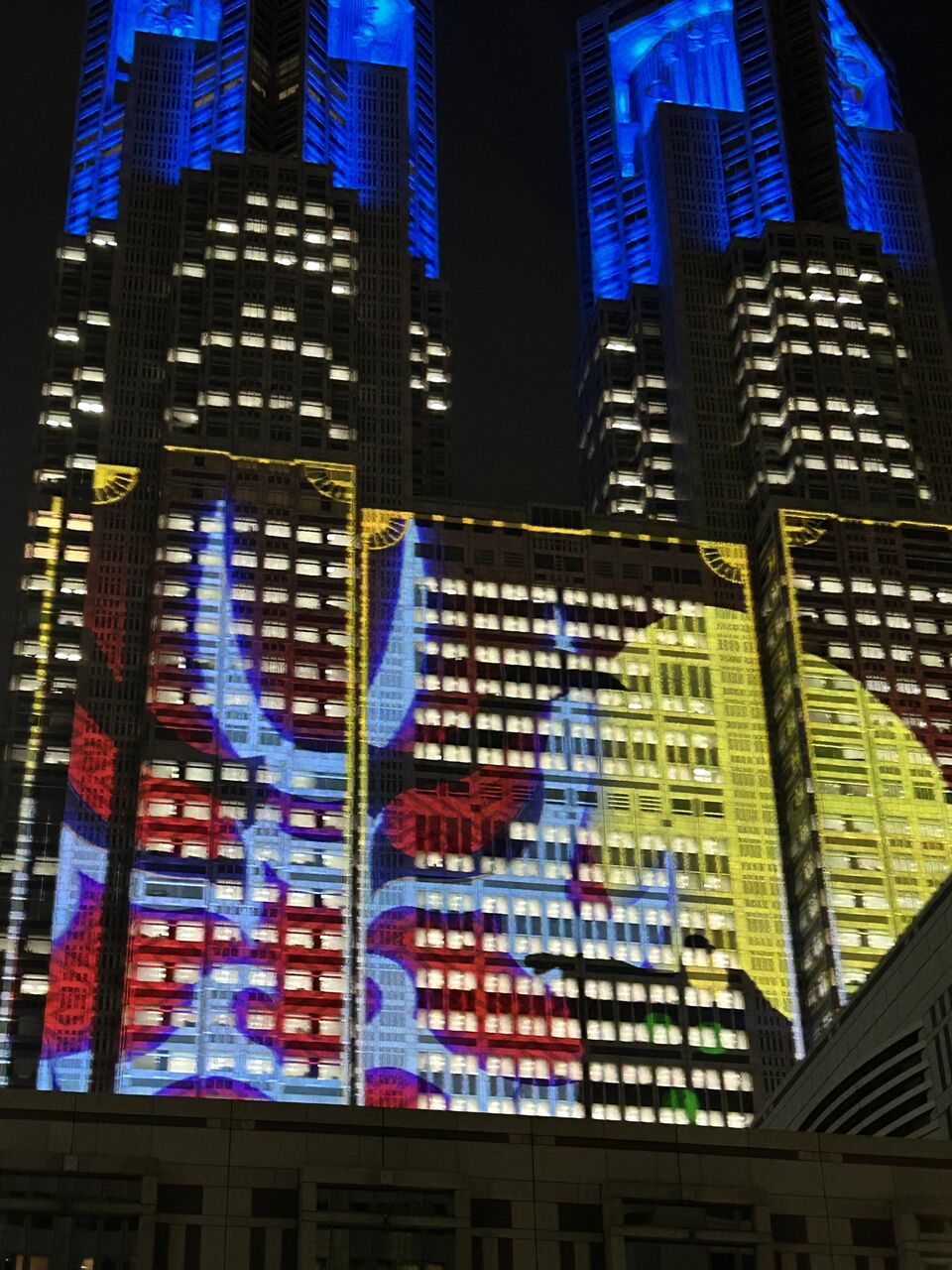 (写真下)都庁のプロジェクションマッピング。東京は夜も賑やか。