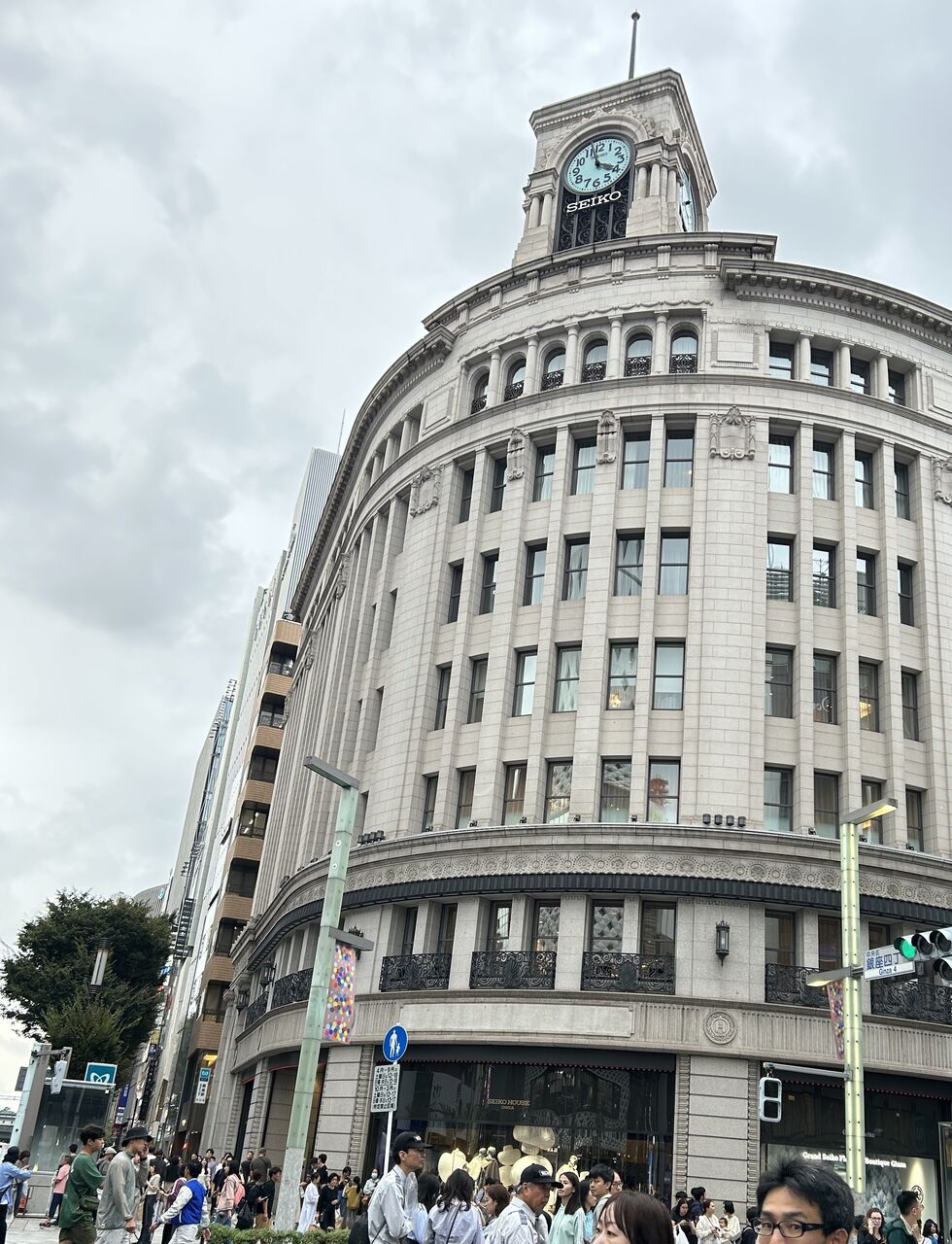週末の銀座は人、人、人。(写真下はセイコーの時計台)
