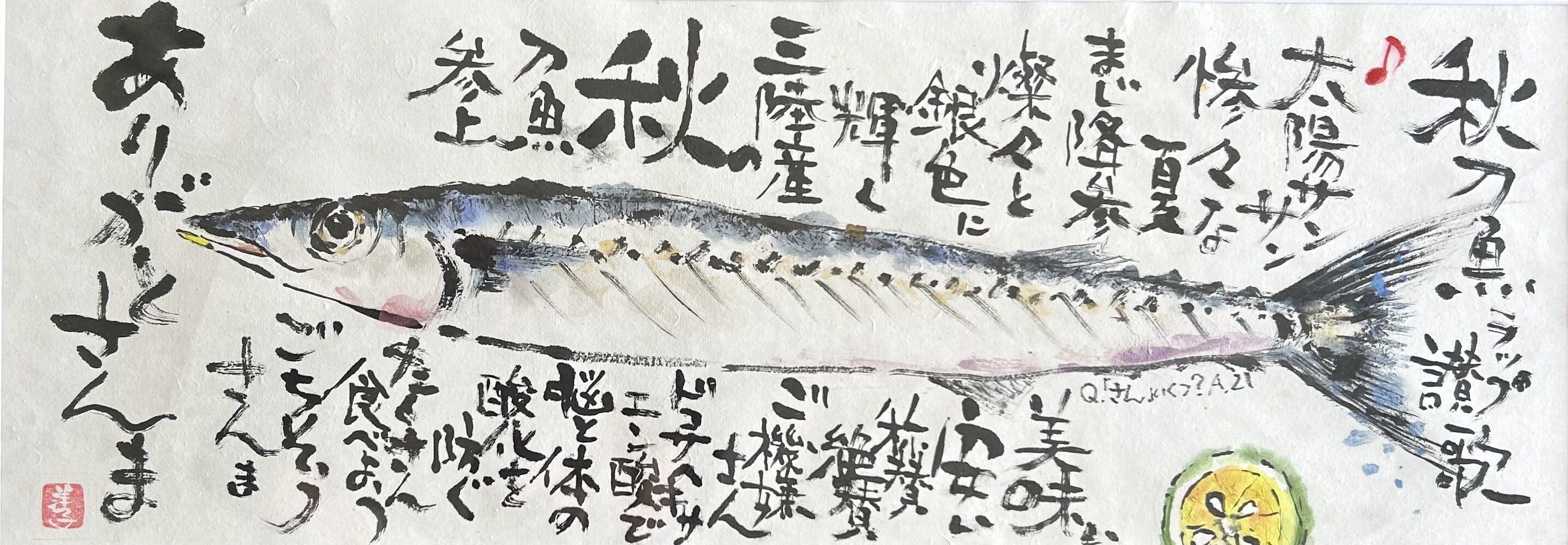 アート展出品作。縦21×横51cm。答え「さん」は全部で21個。