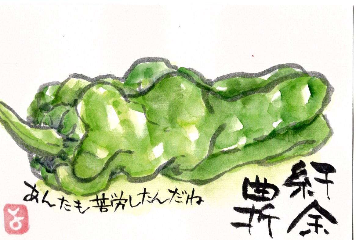 ピーマンもいびつだが、それ以上。絵手紙のモデルにはもってこい。