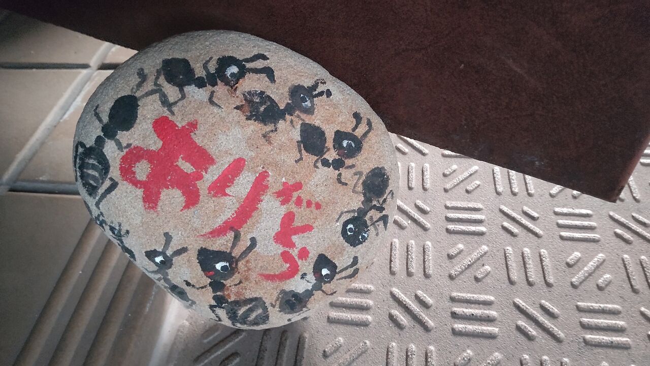 蟻が十匹で「ありがとう」でかいので、玄関のドアストッパーに使用中。