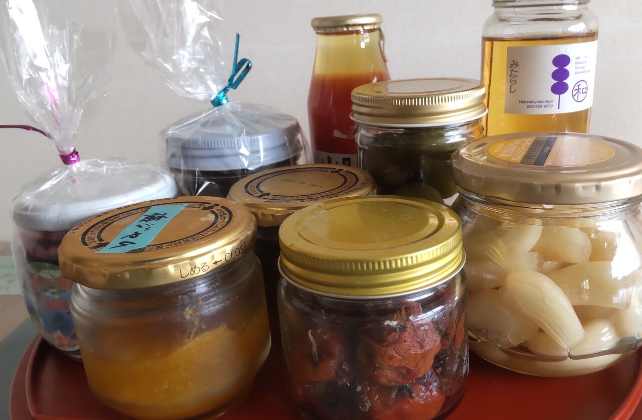 先日の教室、瓶詰のお土産がたくさん。料理上手の皆さんに感謝。