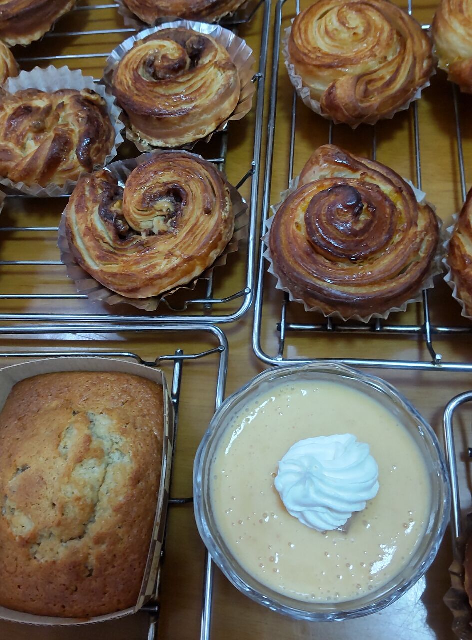 学ぶより食べる為に参加してる私。バナナとクルミのマフィン、柿プリンも。