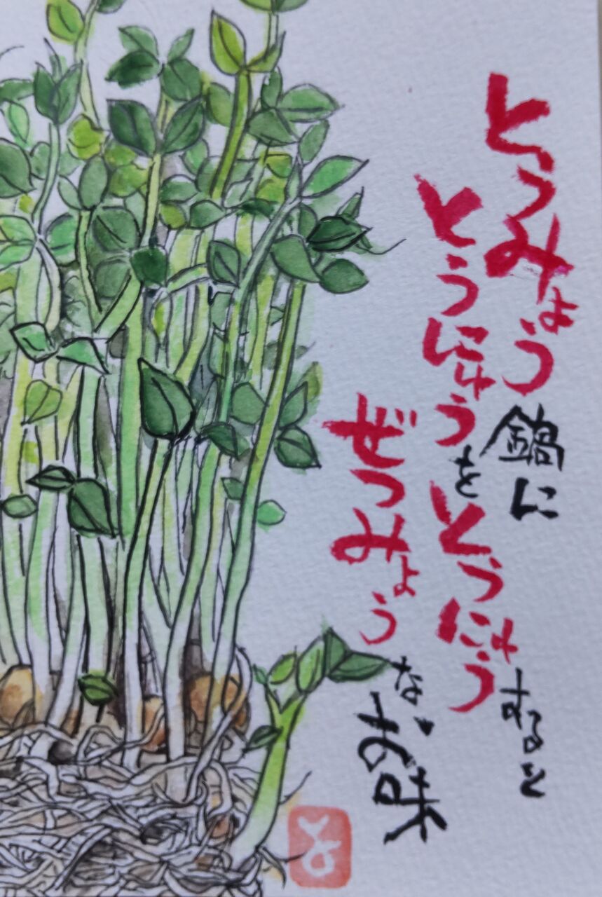豆苗豆乳投入絶妙、全部書けたら漢検何級?豆乳投入でまろやか~。