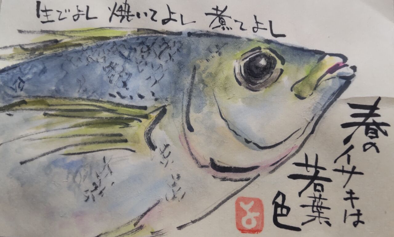 春の鯛・桜鯛は淡いピンク色。新緑の今、Nさんが釣ったイサキが鶯色で驚き。