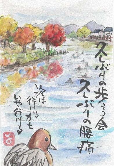 一番若いのに、軽いぎっくり腰で、仲間を見送るのみ。(寡黙な鴨は私