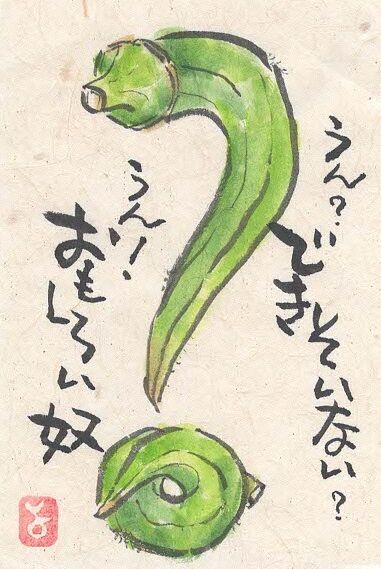 ちぎり残しの規格外おくら入り確定したオクラで文字遊び。