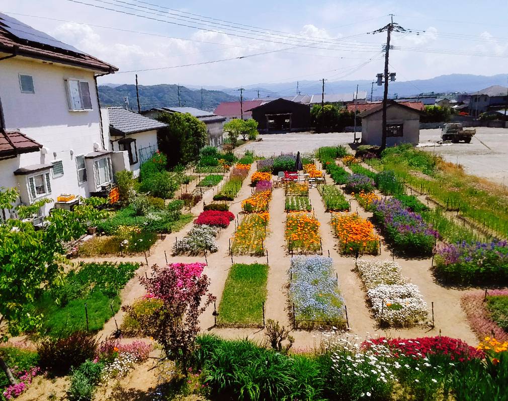 F邸の花畑は運動場並み。裏は薔薇園。隅々まで手入れが行き届き、花も元気いっぱい。