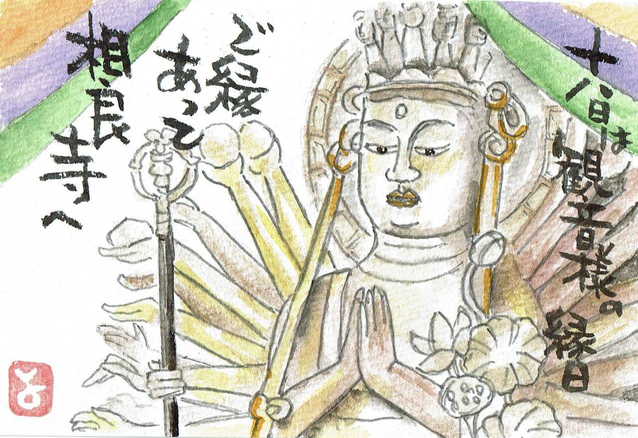 初相良寺(山鹿)は小さいけれど、参拝の人で賑わっていた。木彫座像の千手観音は日本最大級とか。